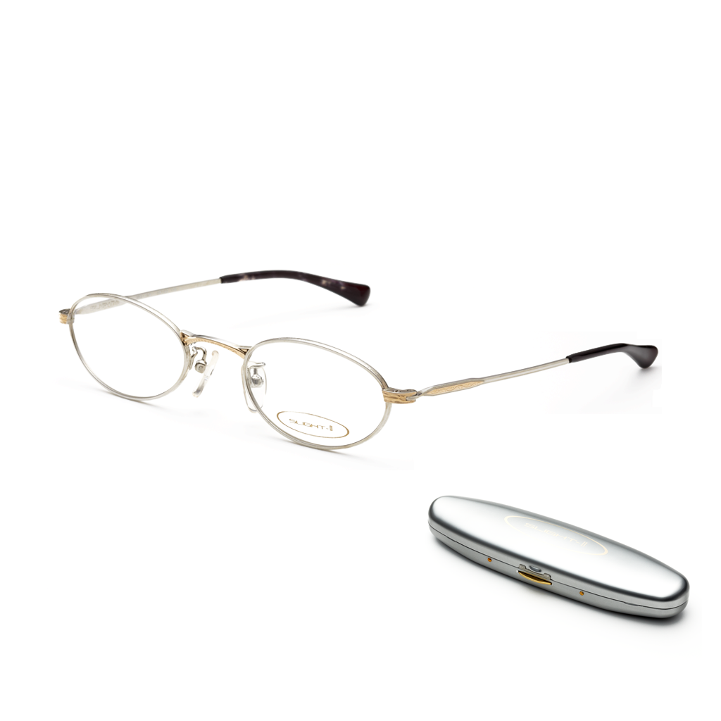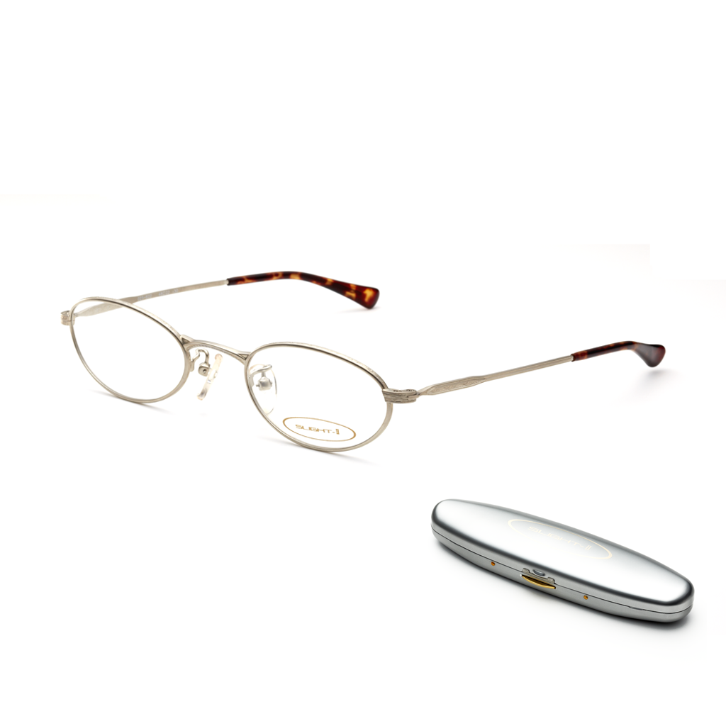 The very best in reading glasses, made in Japan by Kanda of Japan, Slight II is the standard type is easy to put on and take off. The moderately hard stainless steel temples provide a cling fit.